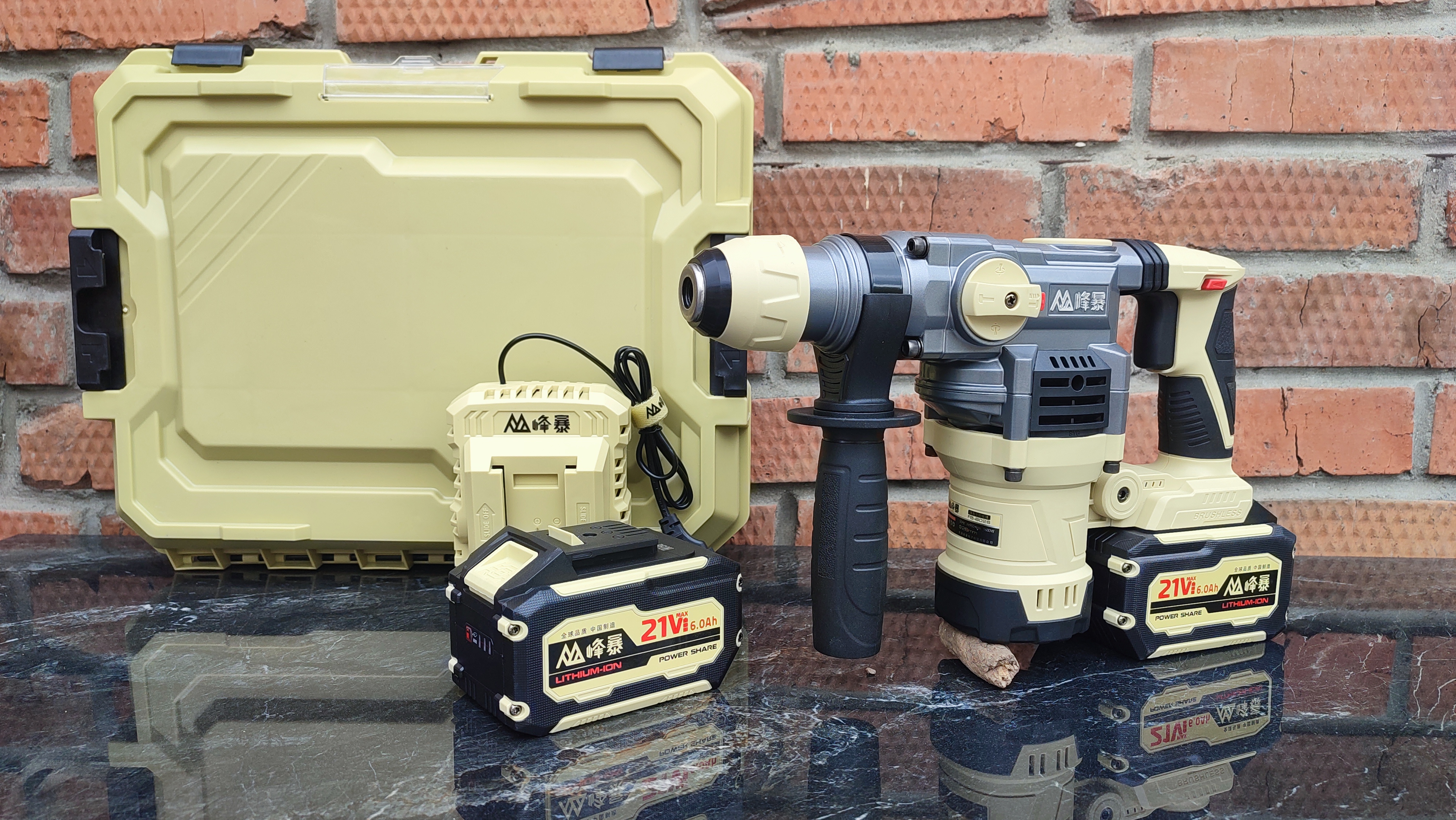 Перфоратор имеет подсветку рабочей поверхности, реверс и дополнительную рукоятку для удобства.