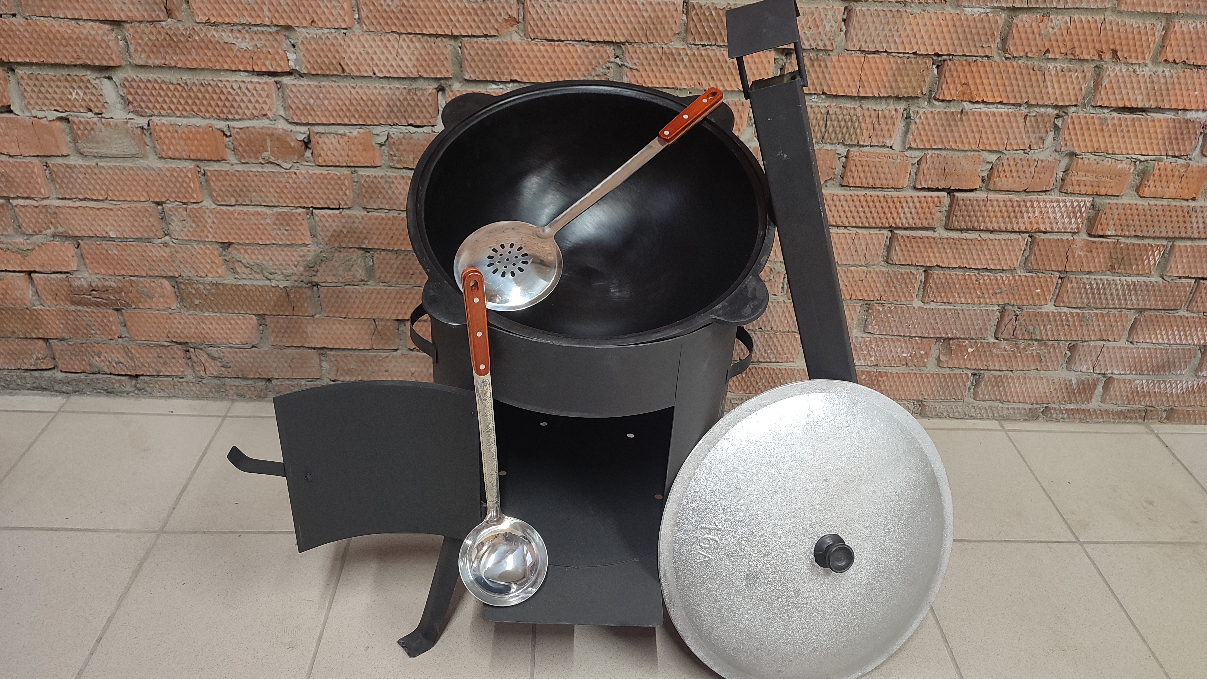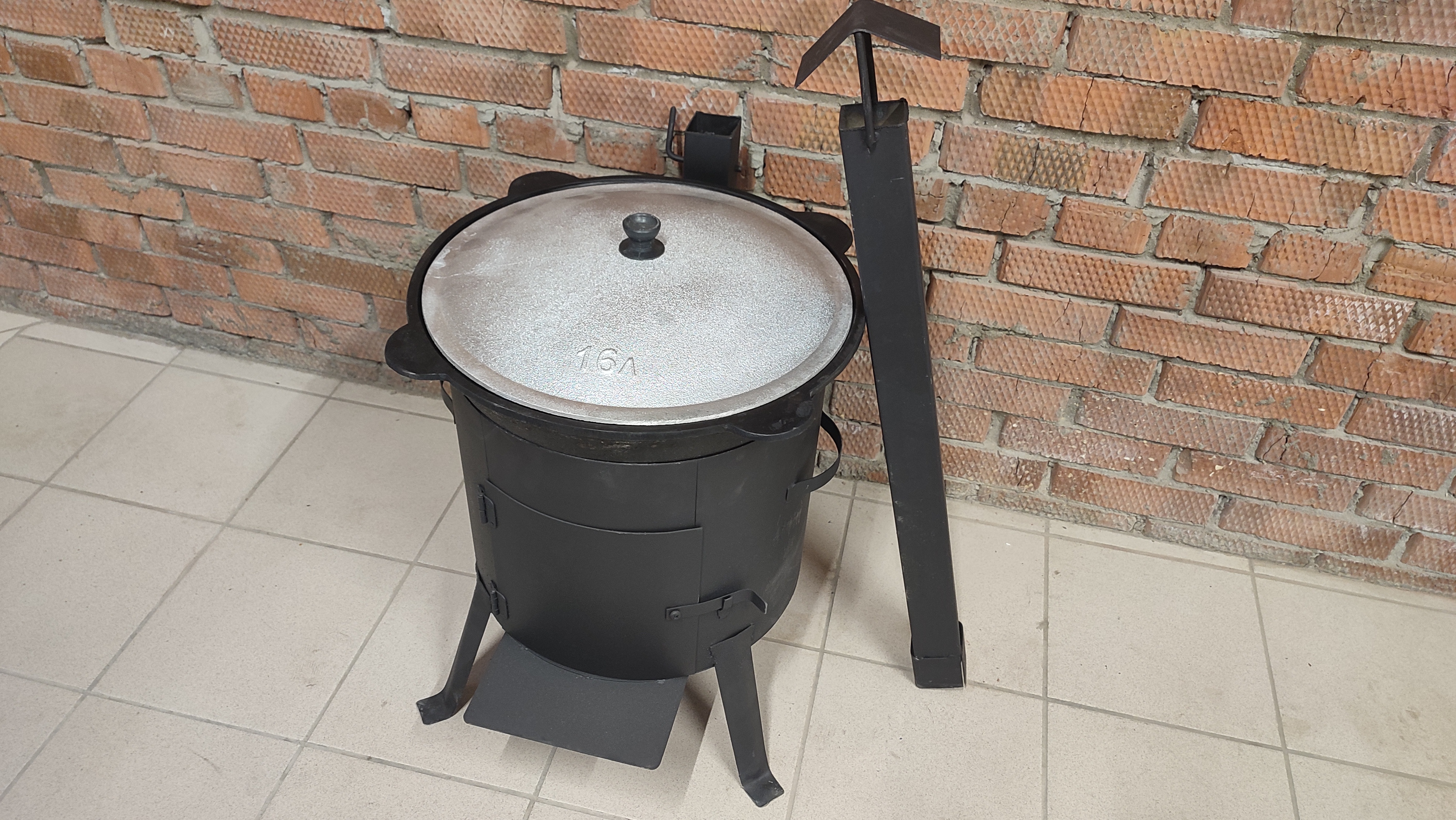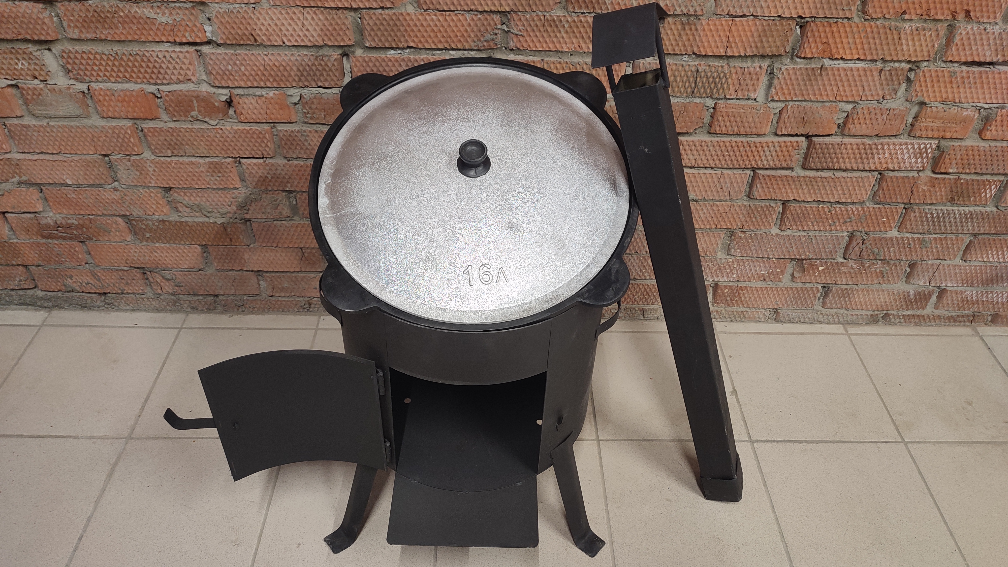 Печь для казана объемом 16 литров с дымоходом. Эта буржуйка идеальна для приготовления различных блюд на природе, особенно для любителей активного отдыха и рыбалки. Она изготовлена из прочной усиленной стали толщиной 2 мм и прослужит более 5 лет. Благодаря термоустойчивой окраске, печь не боится огня, влаги и коррозии, что делает ее идеальным выбором для использования на природе. Равномерное горение дров и отличную изоляцию дыма обеспечивают разборный дымоход и заслонка регулировки тяги.
