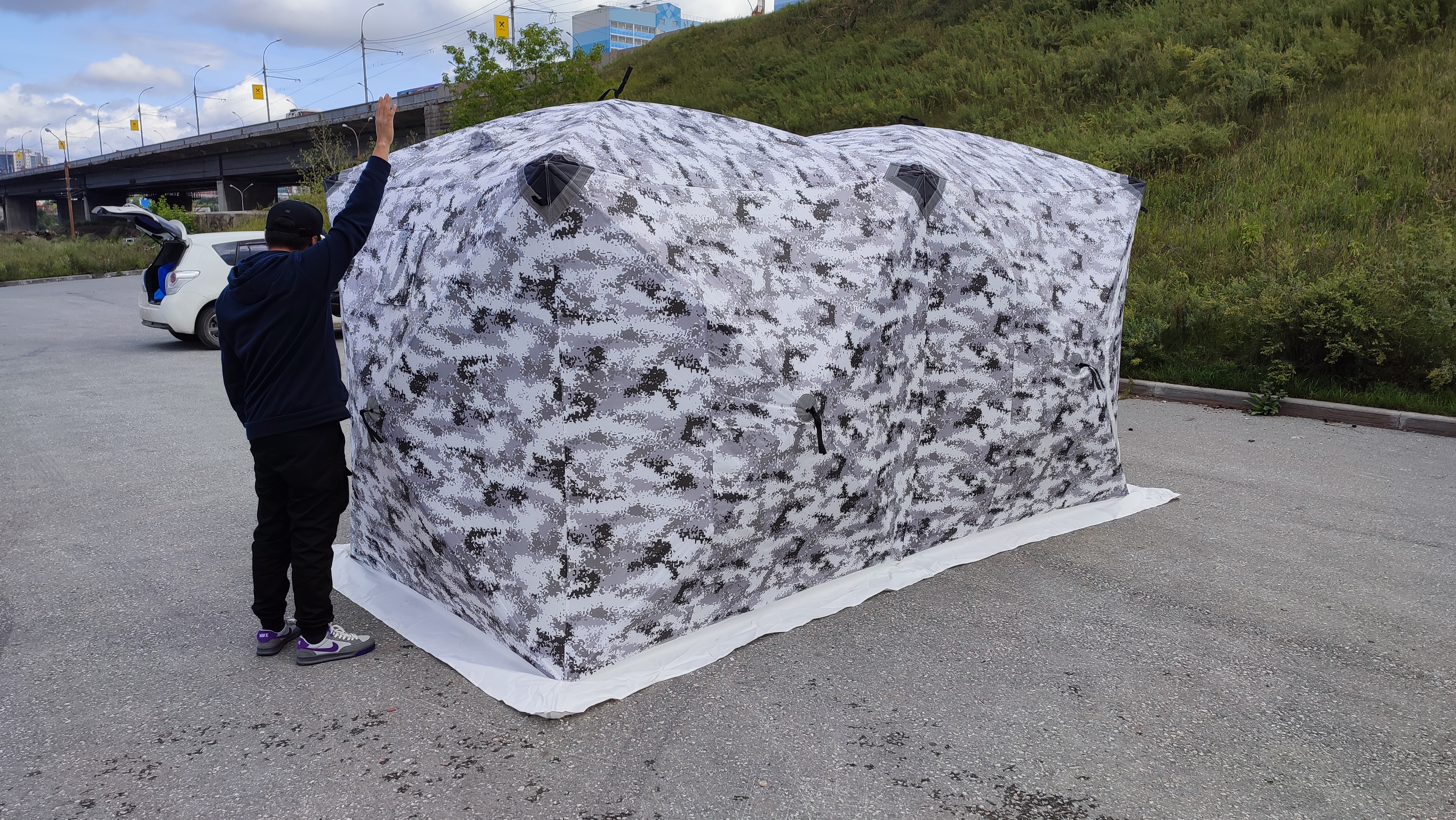 Палатка КУБ утепленная для зимней рыбалки со слоем холофайбера 200*400*200 трехслойная шестиместная