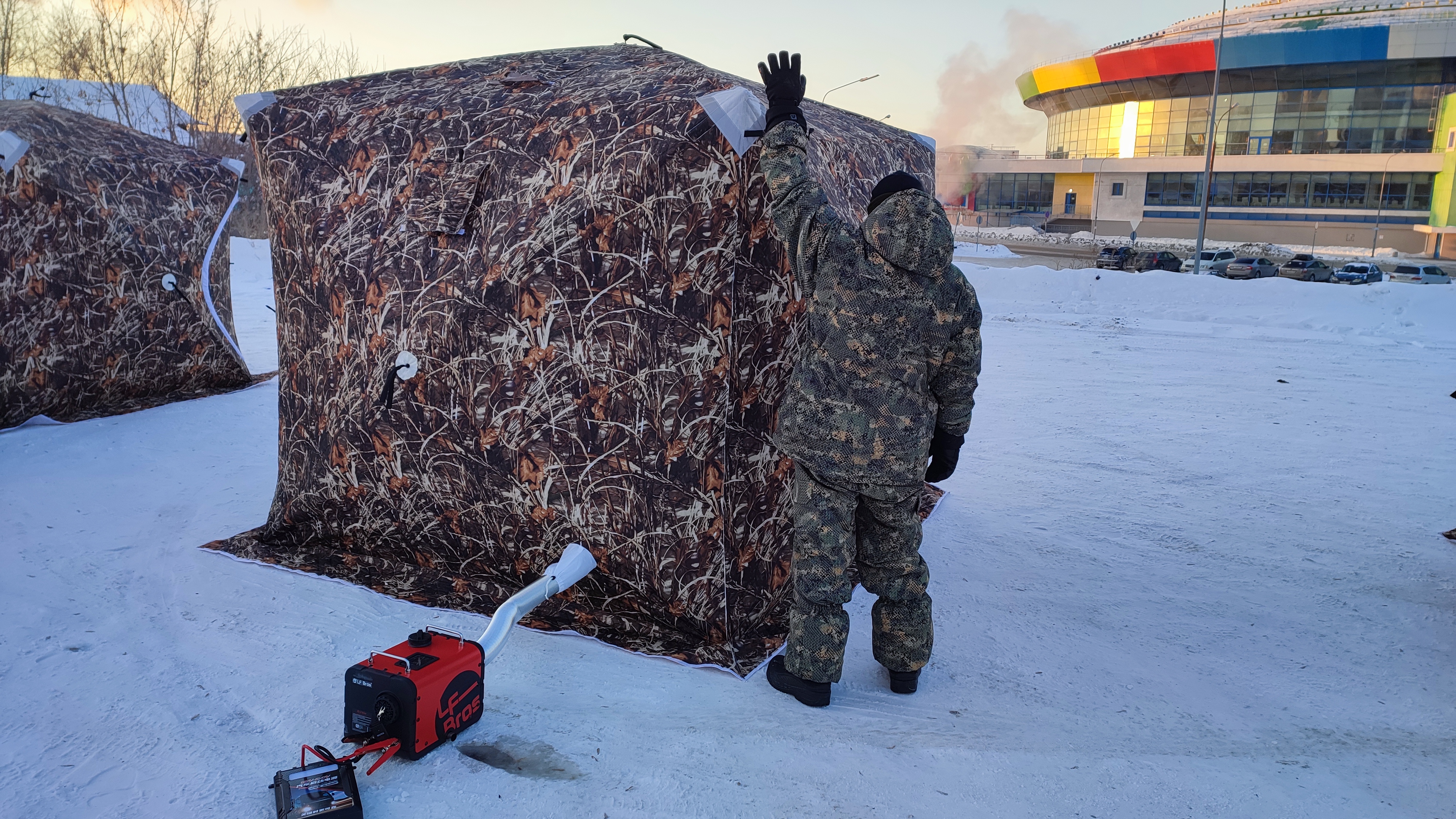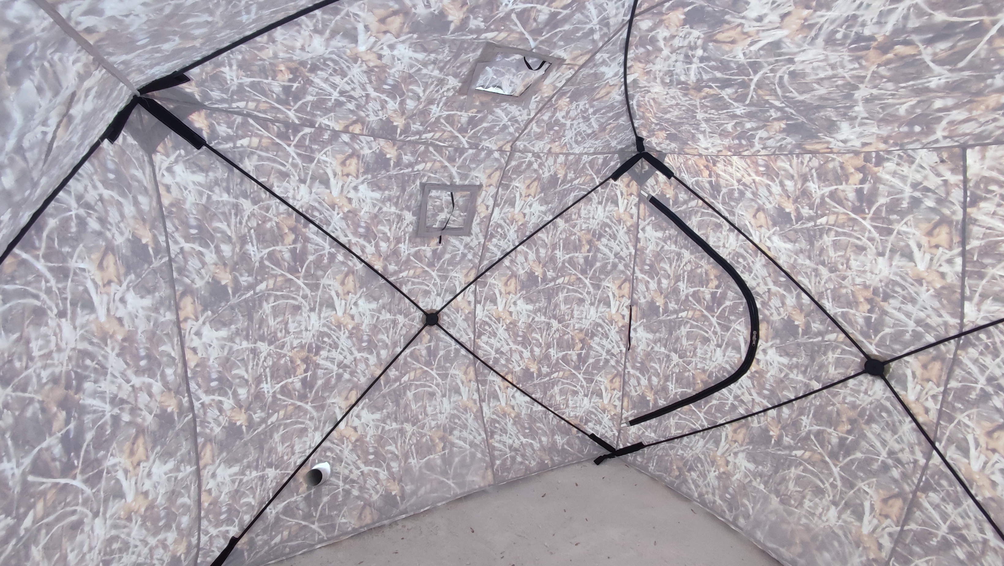 Эта крепкая, трехслойная, утепленная холофайбером палатка для зимней рыбалки придётся по душе заядлому рыболову, так как собирается буквально за несколько минут. Внешний тент ветро - паро - влагозащитный трехслойный, внешний тент NYLОN 300D ТНЕRМАL, средний слой hоlоfаibеr 150 dеn, внутренний слой Охfоrd. Имеет широкую снегозащитную юбку. Каркас из стекловолокна 13 мм обеспечивает надежное сохранение кубической формы в самый сильный ветер и препятствует накоплению влаги и снега на крыше палатки. Двухсторонние молнии, по две собачки на входе и на окнах. Два прозрачных окна, при необходимости можно снять или полностью закрыть в зависимости от условий ловли. Два входа с ветровиками.